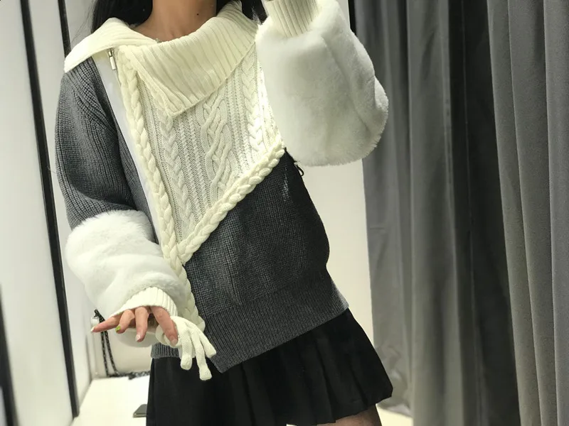 Big Sale Harajuku Knitted Sweater Women's Lapel Plush Loose Outer WearTrimmed Sweaters Tweed Sweater Sweter