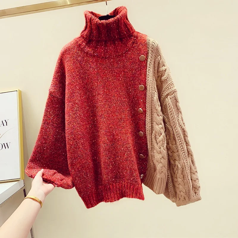 Big Discount Warm Sweater for Women Lazy Wind Pullover Long Sleeve Turtle Neck Sweater Women Autumn Winter Pull