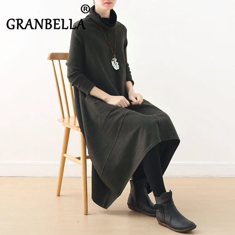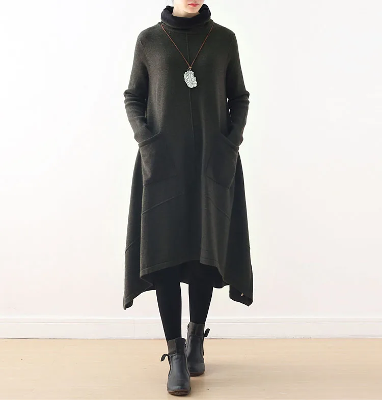 Big Sale Knitted Cashmere Blend Dress Autumn Winter Women's Warm Thick Turtleneck Sweater Dress Female Long