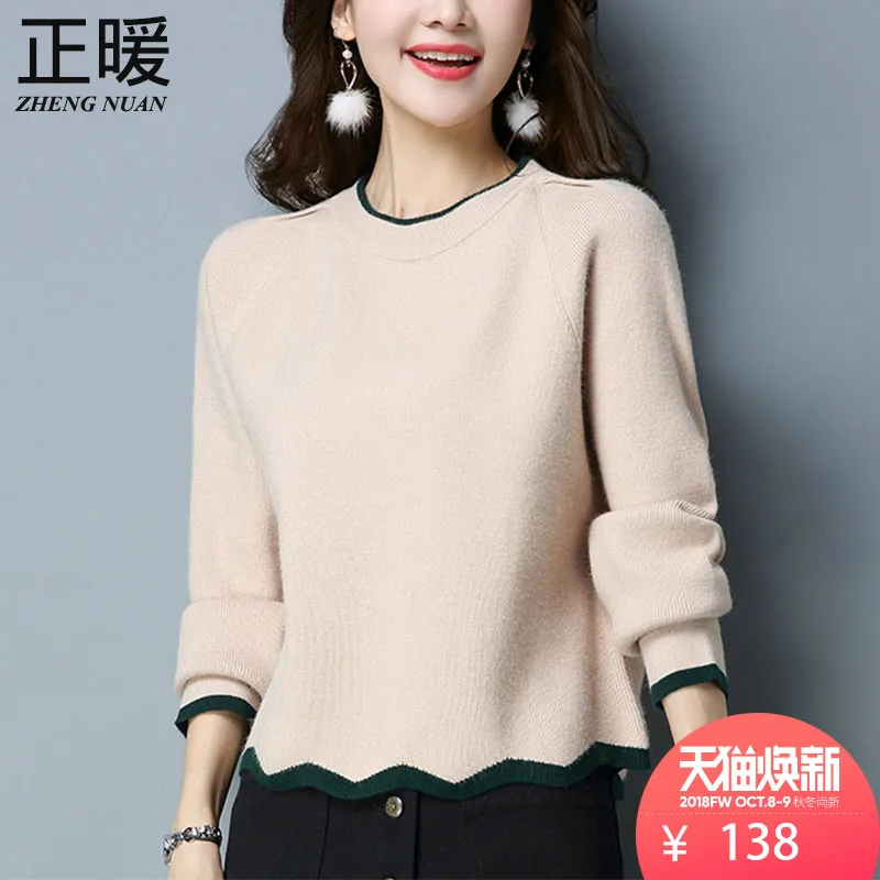 Buy Sweater women's wear autumn 2019 new fashion Korean Edition set loose short low collar long sleeve