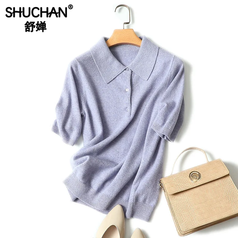Discount shuchan 100% cashmere sweater women warm Office Lady Turn-down Collar Pullovers sweaters fashion 20