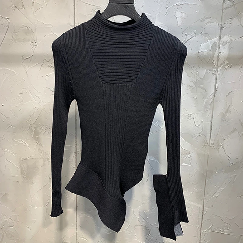 Hot Product Minimalist Women's Sweaters Long Sleeve O Neck Slim Irregular Female Sweater 2019 Autumn Large Size