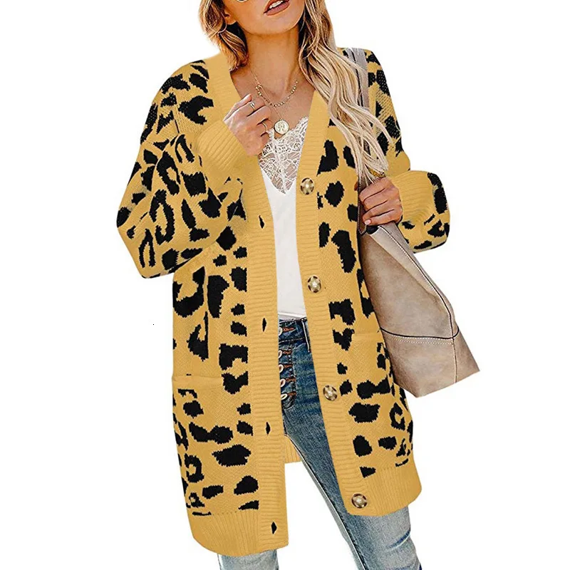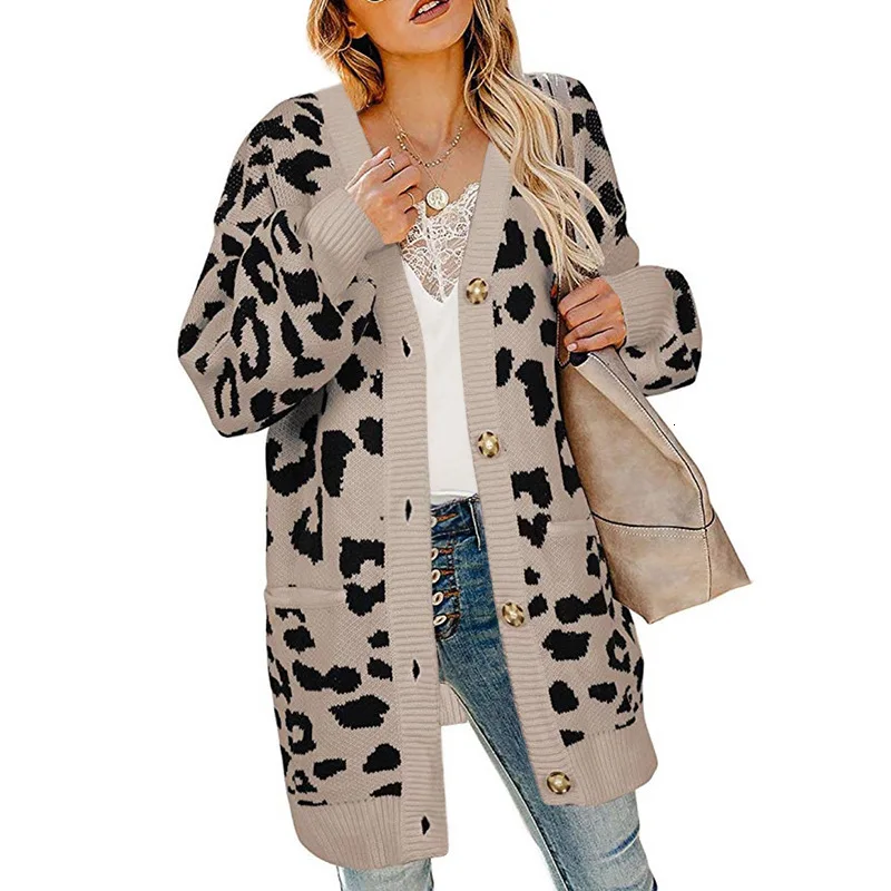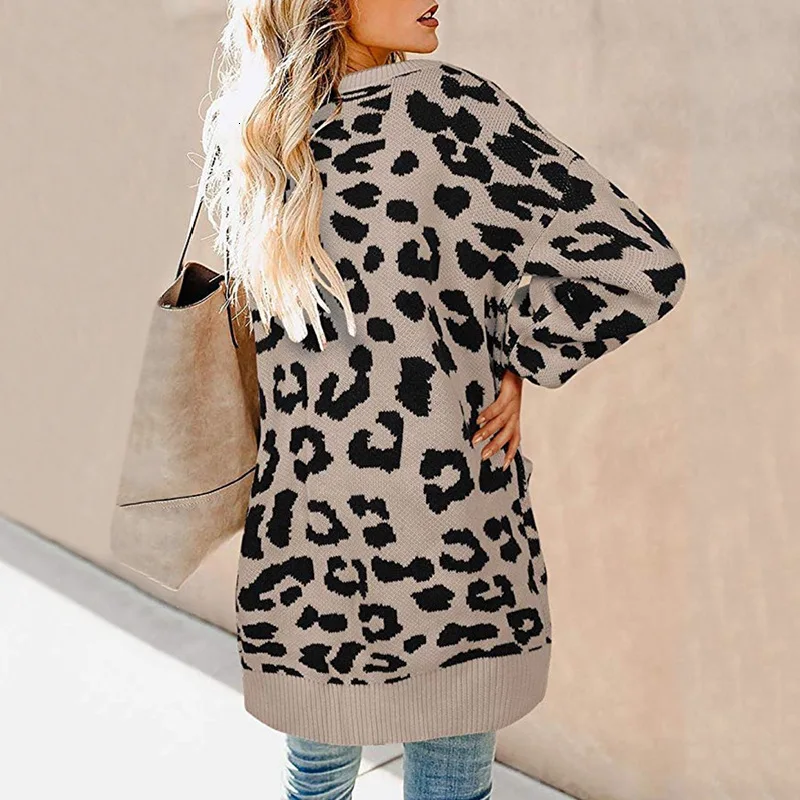 Wholesale RQUEENA 2019 Autumn Winter Long Leopard Cardigan Women Sweater Lantern Sleeve Loose Single Breasted