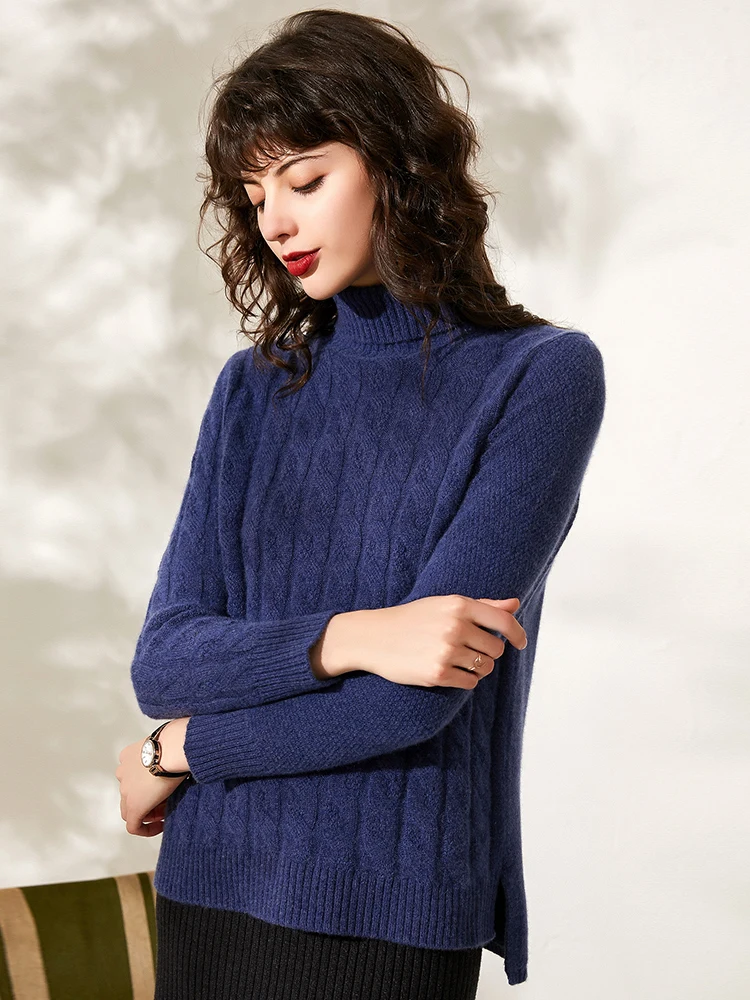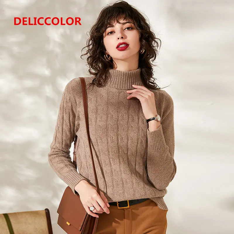 Discount 100% pure cashmere sweater turn-down collar sweater Lapel lady long sleeve pullover sweater thick a