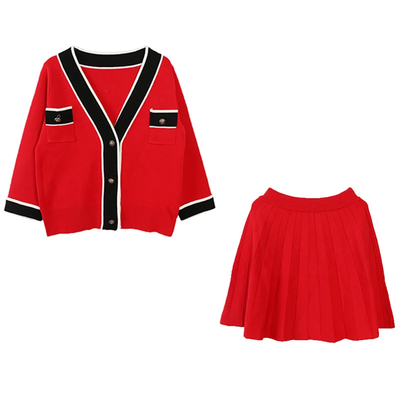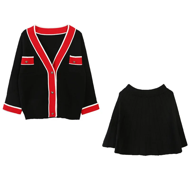 Promo Europe and America New Women's V-neck contrast lace knit top with pleated skirt set in autumn and w
