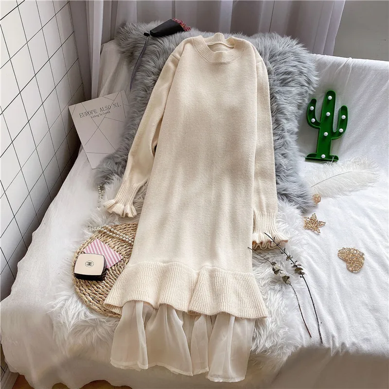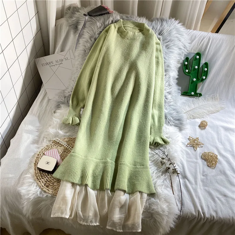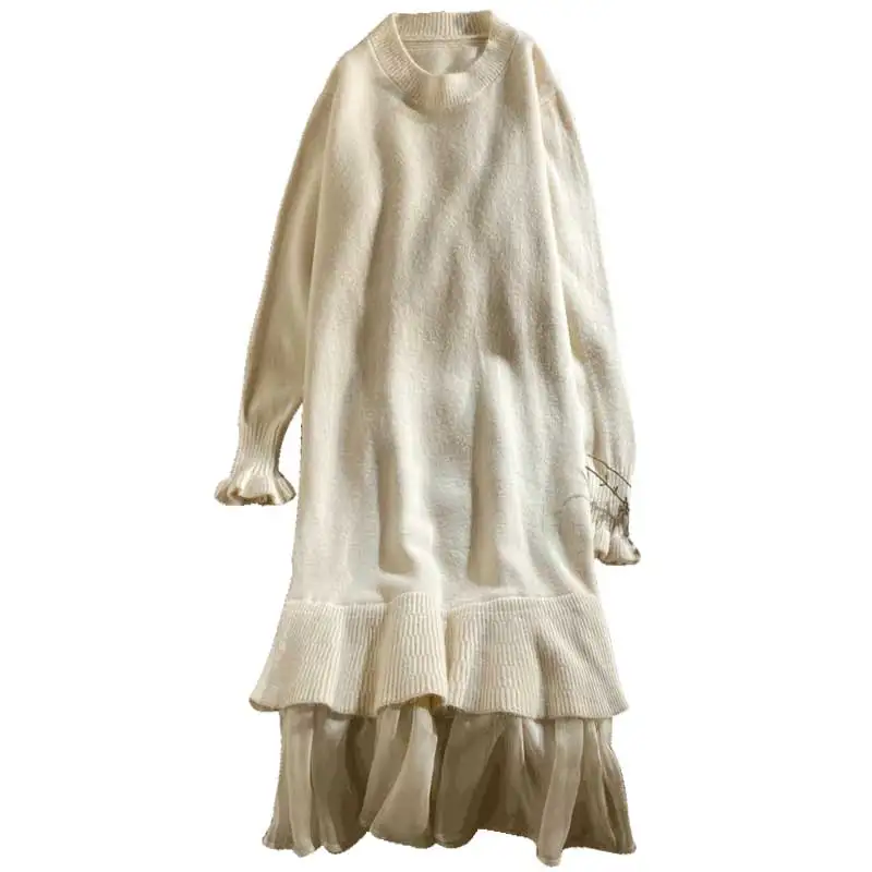 Belum ada Komentar untuk "Wholesale Sweater skirt women's knee long section 2019 new autumn and winter lace stitching bottoming knit dr"