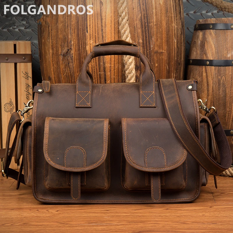 Wholesale 2018 Brand Vintage Cowhide Handbag Genuine Leather Handmade Messenger Bag For Men Shoulder Bags Bus